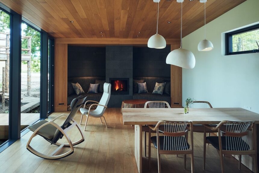 SONEKAは、約77,000平方メートルの広大な森の中に、4棟のヴィラのみを展開するプライベートリゾートです。すべてのヴィラは1棟ずつ独立しており、自然の景色を楽しめるように設計されています。大きな窓やテラスからは、北海道・輪厚の四季の移ろいを感じることができ、室内にいながらも自然を身近に感じられる特別な空間です。